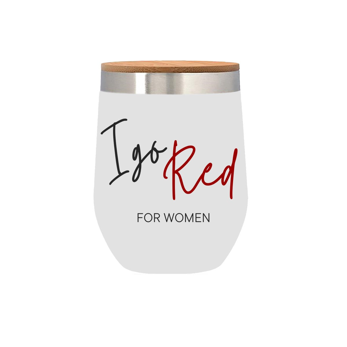 Introducing the 2024 edition of our highly sought-after Go Red for Women tumbler, now in a 12 oz. size and featuring a snap-on bamboo lid adorned with the iconic red dress engraving. Crafted with double-wall construction, this BPA-free stainless steel tumbler boasts a sleek powder coated white finish and a secure non-slip bottom. Elevate your style with this chic tumbler, making it an ideal gift for yourself or someone special!