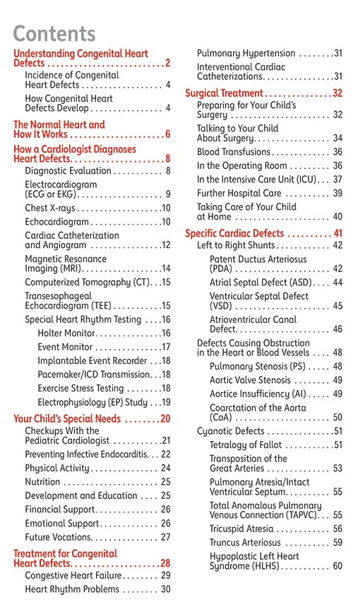This comprehensive guide for parents and caregivers describes and illustrates common congenital heart defects. Topics include how heart defects are diagnosed and managing a child’s special needs. It also helps explain the medical and surgical treatments a child may require. Sold in packs of 10.
